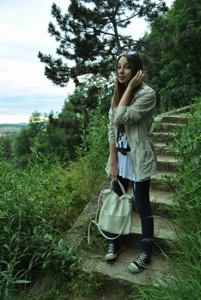 so, this weekend was as usual as the others, but I was lucky because it didn't rain. Me and my friend had other plans, but we ended by taking new photos for my blog. I was wearing Zara Jacket, H&M shirt, Zara Jeans, Unknown Sneakers and mom's leather bag (for the 1st time she bought smt. I really liked :D )