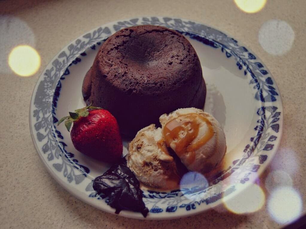 Be careful : the over must be pre-heated ! Don't keep them for more than 10 minutes, even though it may look that they are not well-baked. It's just a false impression: they inside must be fluid, like a steamy lava. You can decorate the plate however you like, just make sure to add vanilla ice cream - the hot fuzzy chocolate and the icy vanilla match perfectly.